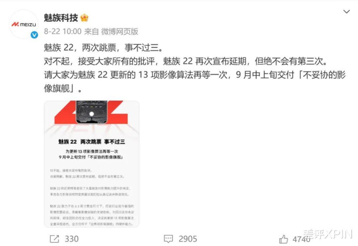 最后也算是意料之中的事情,沉默许久的官微在上周五终于承认魅族 22 还要再跳票,而这次跳票的理由是“ 为了打磨更新的 13 项影像算法 ”。